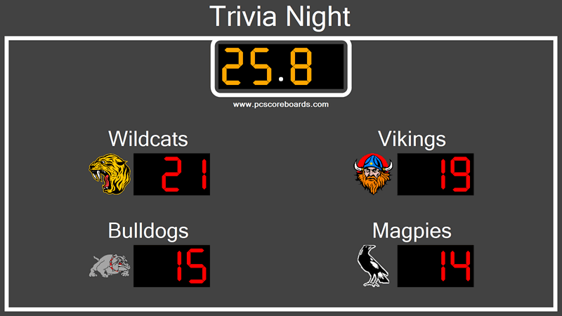 Use our trivia scoreboard to keep your players and spectators engaged in the game. Combine our trivia software with your computer and projector/display for a complete trivia scorekeeping solution.